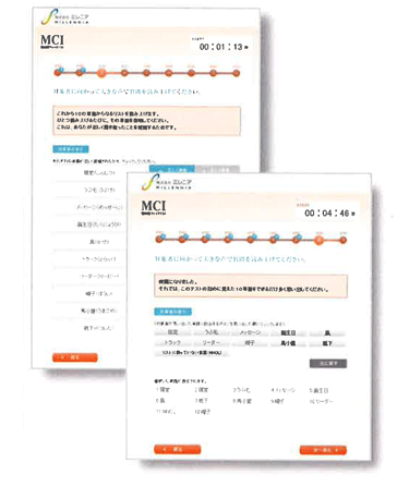 あたまの健康チェックは、Adas-CogやCERADなど高次機能検査などで用いられる10単語想起テストをベースに米国で研究・開発された、専門家でなくとも利用できる簡易認知機能テストです。米国内で行われた正確性検証の結果、