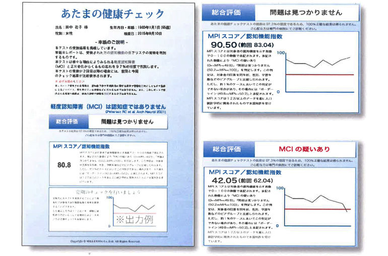 あたまの健康チェックは、テスト実施者の能力や経験に基づく観察や主観的評価を要するものではなく、約75万件の被検データから開発された独自の評価プロトコル、アルゴリズムによりテスト回答やそのパターン・受検者の人口群と照合し、人口統計学的に客観評価するものです。 - ●このテストの信ぴょう性はどうでしょうか?