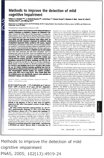 頭の健康チェックは、はじめての日本語版です。原版精度との透過性を保つため、翻訳作業には言語学者も介入し、日本語版の検証は福岡大学医学部神経内科学山田達夫医師グループにより行われ、原版同様の精度を示しました。右図:PNAS(米国アカデミー紀要掲載)