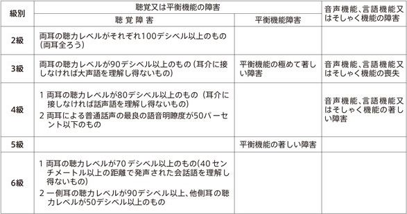 身体障害者障害程度等級表